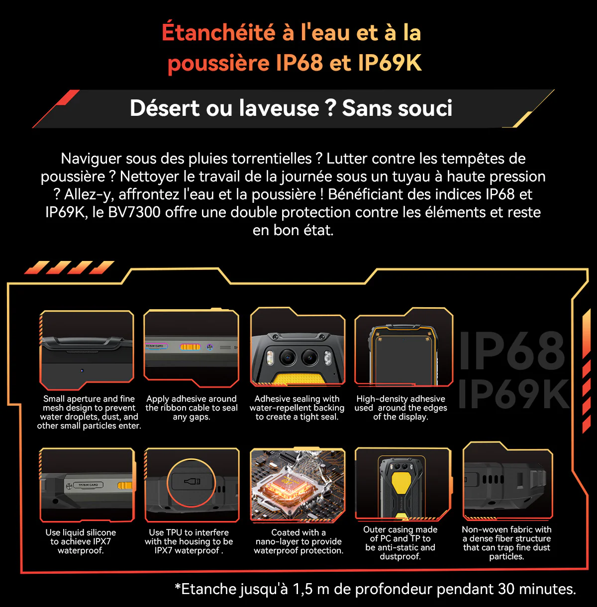 Écran 6.67'' Réseau 4G+ Double Sim Android 14 Certifié IP68 & IP69K & MIL-STD-810H Processeur MediaTek Helio G8 Mémoire Interne de 256 Go Mémoire RAM